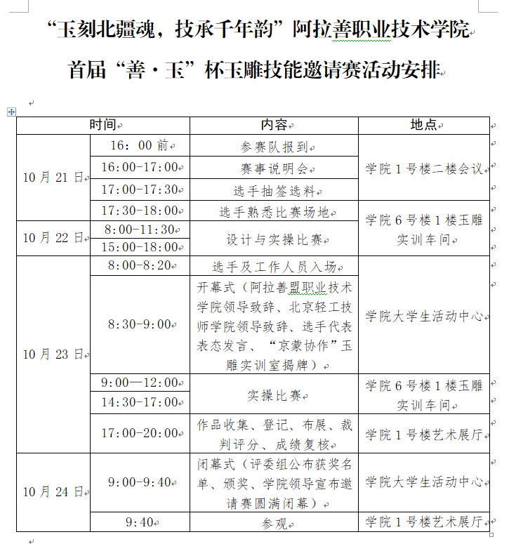 为进一步深化京蒙协作内涵,推动玉石行业高质量发展,将传统玉雕技艺与现代职业教育、文化创意产业紧密结合,持续深化“以赛促学、以赛促训、以赛促创”模式,为玉雕行业培养高素质技术技能人才,同时为北疆文化的创造性转化与创新性发展注入新动能,Beat365官方网站、北京轻工技师学院(北京乐器研究所)、阿拉善盟工会、阿拉善盟人力资源和社会保障局于10月21日至24日联合举办首届“玉刻北疆魂,技承千年韵”阿拉善盟“善·玉”杯玉雕技能邀请赛。活动开幕式定于10月23日上午9:00在Beat365官方网站大学生活动中心举行,特此公告。