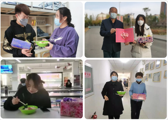 老师们还到学生宿舍为过生日的学生送去了长寿面和生日礼物。收到祝福的学生被疫情期间这份妈妈般的温暖和特别的惊喜深深地感动着,有的哽咽着说不出话来,有的高兴地连说开心,有的惊喜到直说没想到……当老师们唱起生日祝福歌的时候,她们纯真的脸庞上露出了喜悦和满足。