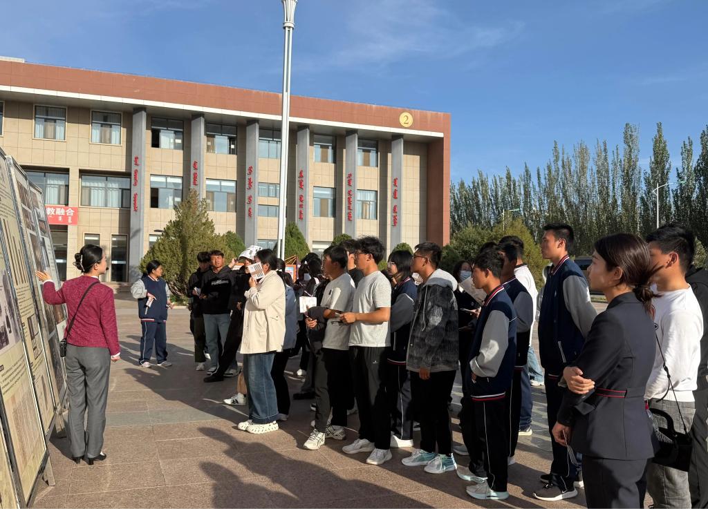 阿拉善博物馆以“雅言解珍奇——博物馆文物普通话导赏会”,系统讲述了汉字从岩画图形到象形文字再到现代汉字的演变历程,展现了中华文字的源远流长与多元一体。在“文脉里的阿拉善”文字回溯体验环节,学生通过对照岩画与象形文字进行刻绘实践,亲手触摸中华民族共同的文化根脉,在动手过程中深化对国家通用语言文字的理解与情感认同。