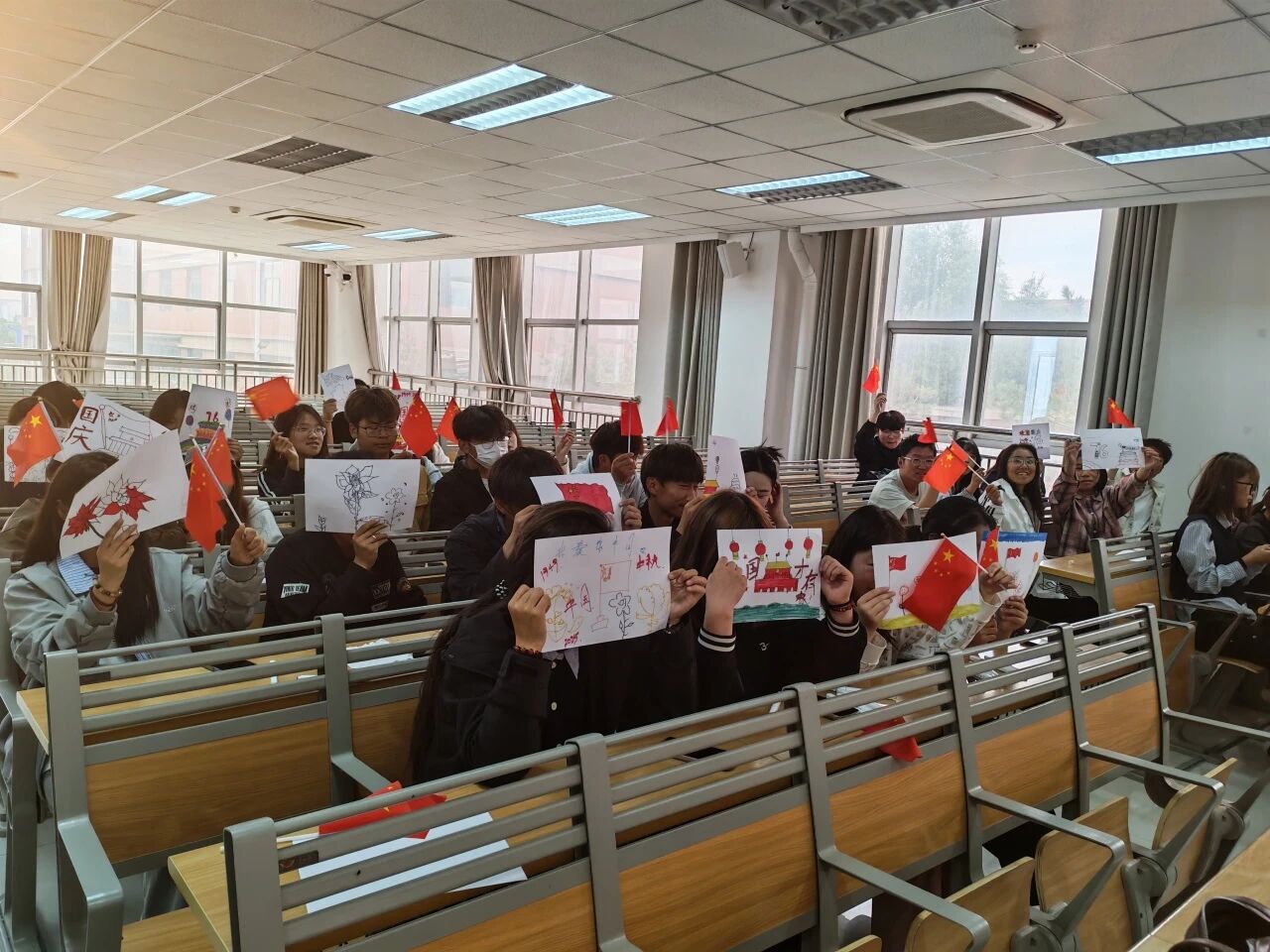 活动伊始,全体师生齐唱国歌,共同观看展现新中国发展历程与医护人员抗疫精神的爱国短片,在庄严氛围中激发爱国情怀。在“我心中的爱国小事”分享环节,同学们结合医护专业特点,围绕“认真学习专业知识,未来救死扶伤”等主题展开交流,将爱国情怀融入日常学习与职业理想。随后开展的“祖国知识接力赛”中,各组通过你画我猜、关键词抢答等形式踊跃参与,在趣味竞答中加深对国情的了解,提升团队协作能力。活动还设置“共绘祖国蓝图”集体绘画环节,各小组协同创作,以画笔表达对祖国的热爱与祝福。活动最后为积分领先的队伍颁发了“团结之星”奖状。