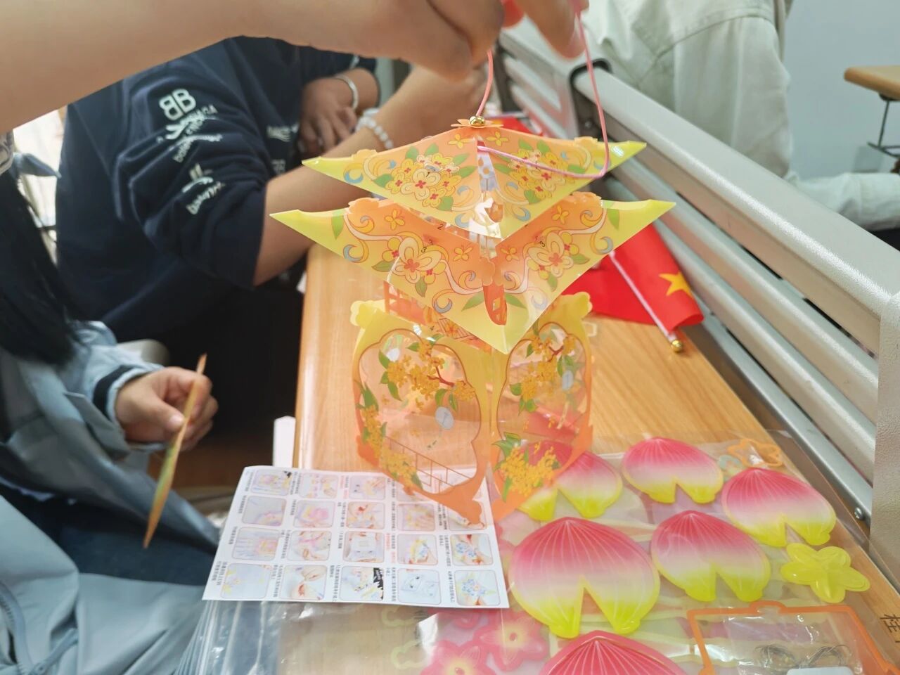 活动设置多项传统文化体验环节,让学生在动手实践中深刻感受中秋文化的独特魅力。在创意祝福区,同学们运用马克笔在特制灯笼上书写中秋祝福,将对亲友的思念之情凝聚于笔端,传递出浓浓的情谊。手工制作区内,DIY花灯活动吸引了众多参与者,同学们精心制作传统花灯,在动手实践中领略传统工艺的精髓。智慧灯谜区格外引人注目,精心准备的谜题,使同学们或驻足沉思,或热烈讨论,在破解谜题的过程中体会中华优秀传统文化的智慧与趣味。传统游艺区同样气氛热烈,投壶游戏前聚集了不少体验者,大家轮流尝试这一古老游戏,现场欢声笑语不断。活动最后,手工月饼制作环节将气氛推向高潮,大家亲手制作象征团圆的月饼,在温馨愉悦的氛围中感受中秋佳节的深厚文化内涵。