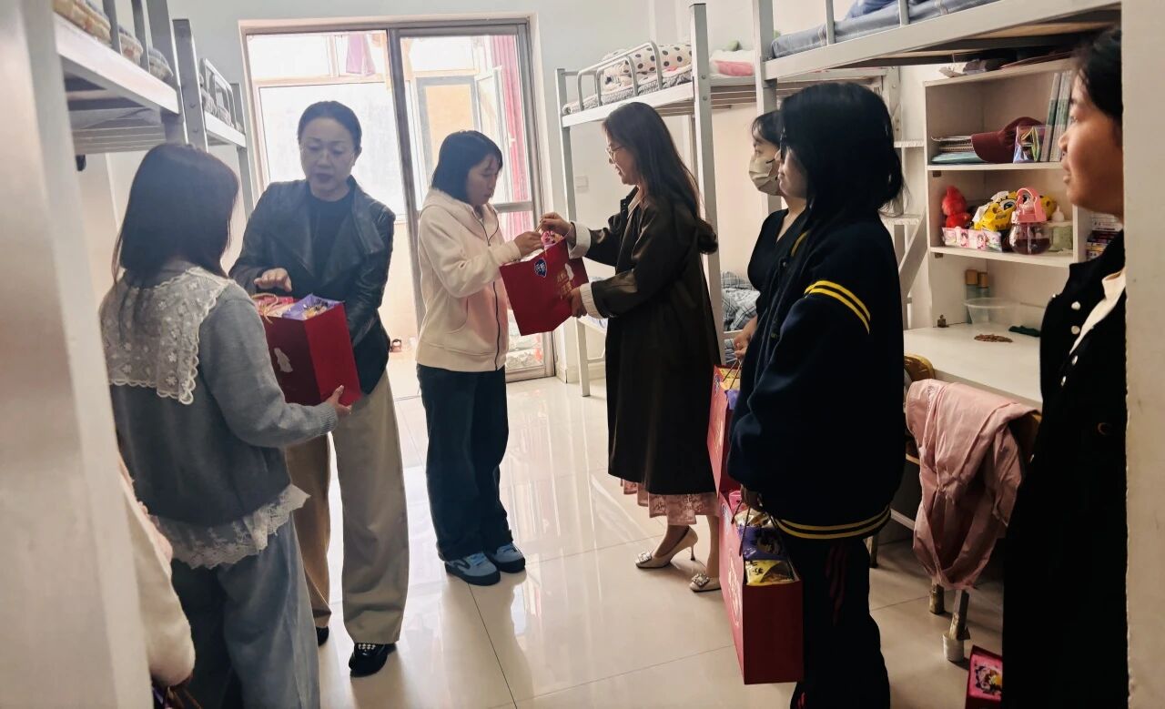 系党总支委员及班主任分组前往学生宿舍与学生亲切交谈,详细询问他们的学习安排、生活状况及健康情况,叮嘱大家合理规划假期时间,注意饮食安全与个人防护。留校学生表示,虽然没能回家过节,但收到老师送来的礼包,感觉特别温暖。