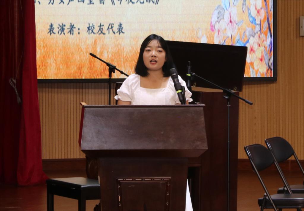 优秀毕业生代表白梦莎代表全体毕业生感恩母校、老师的精心培养和悉心教导,郑重承诺作为阿职学子,不辜负母校的培养,在工作岗位上奋发向上、争做社会栋梁。
