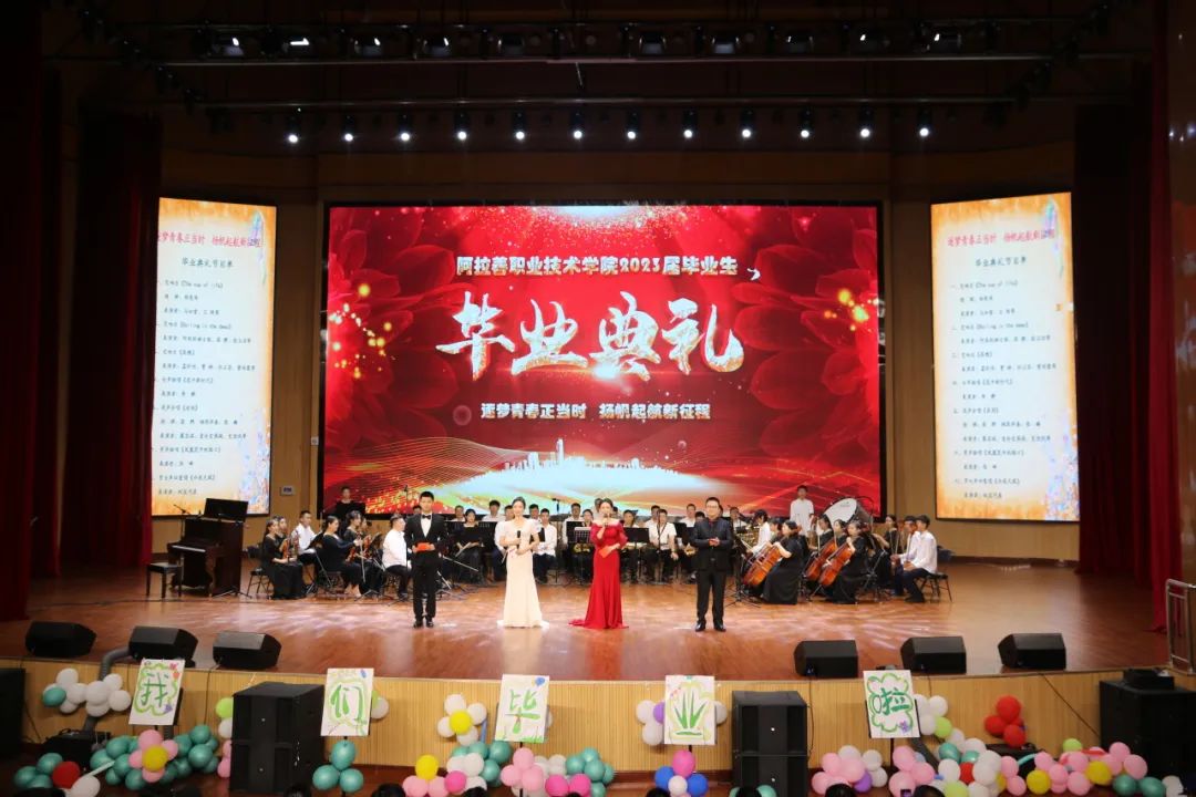 文艺演出在《THE CUP OF LIFE生命之杯》交响乐中拉开帷幕。精彩的《ROLLING IN THE DEEP》、《高燃》交响乐演奏浩气长存、豪情万丈,饱含深情的《送别》合唱共叙离别、祝愿美好,《花开新时代》、《凤凰花开的路口》独唱更是吟唱希望、激扬青春。《今夜无眠》四重唱为毕业典礼画上了圆满句号。整场演出异彩纷呈,活动现场气氛热烈、掌声迭起。