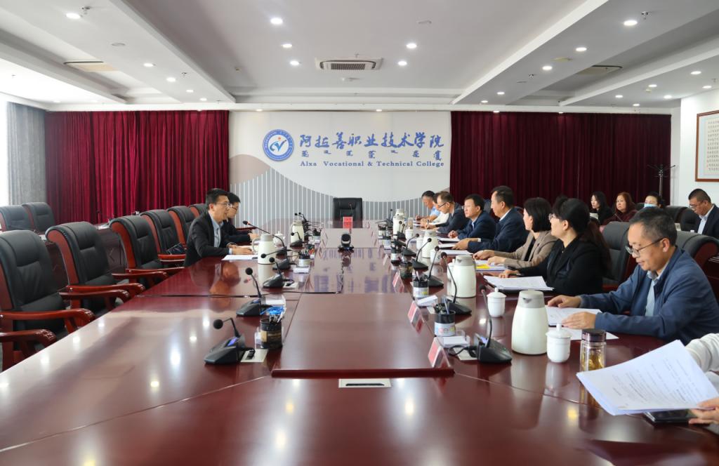 9月23日下午,自治区教育厅高等教育处处长席东民一行来Beat365就秋季开学工作情况开展调研。教育厅副厅长李伟通过视频连线方式出席座谈会并讲话。学院党委副书记、院长牟献友,在家院领导,盟教育体育局及学院相关部门负责人参加。