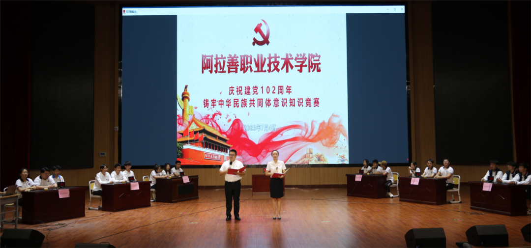 为全方位、多角度考察学生对铸牢中华民族共同体意识知识的掌握情况,竞赛设必答题、抢答题、风险题、观众互动题四个环节,来自教学系部的6个参赛队伍18名选手现场展开激烈角逐。各参赛选手精神饱满、沉着应战,现场气氛热烈、高潮迭起,赢得在场师生热烈的掌声。经过比拼,评选出一、二、三等奖各1名,优秀奖3名。