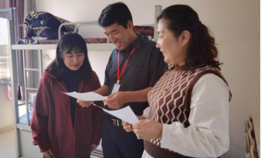 9月29日下午,学院党政办主任李春阳在艺术系党总支书记乌尼太及系学生科工作人员的陪同下,到学生公寓慰问十一期间留校学同学,送去慰问品和节日问候。