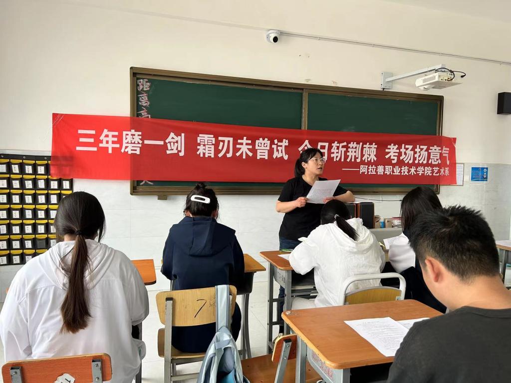 动员大会上,艺术系副主任叶静向三年来老师们的辛勤付出表达了衷心的感谢,代表所有教师表达了对学子们三年学习的肯定,并预祝学子们高考取得理想的成绩。大会从九个方面重点强调了高考的各项注意事项,要求考生按时打印准考证、按时参加入场演练、带齐证件赴考、妥善做好赴考规划、穿校服参加考试、按要求备好考试用具、做好个人防护、心怀敬畏诚信应考、放松心态沉着应考。同时,从进考场前调节心态、合理饮食、应对夏季常见病、考前睡眠、突发证件丢失、考场应急等六个方面给考生给出了合理的建议。