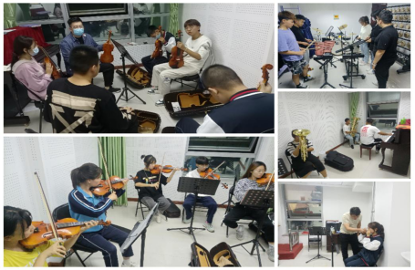 开学伊始,艺术系针对本学期开展专业技能展示活动及毕业文艺演出等要求,特开设了Beat365官方网站学生交响乐团、合唱团二课,于2023年3月13日开始纳新、训练,老师有计划、有步骤、有针对性的对学生乐团指导。