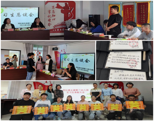 6月8日上午,阿左旗第二幼儿园召开实习生恳谈会。艺术系党总支书记乌尼太、教务处质评科副科长徐海霞、学前教育组组长王秉雁、教师高群受邀参加会议。