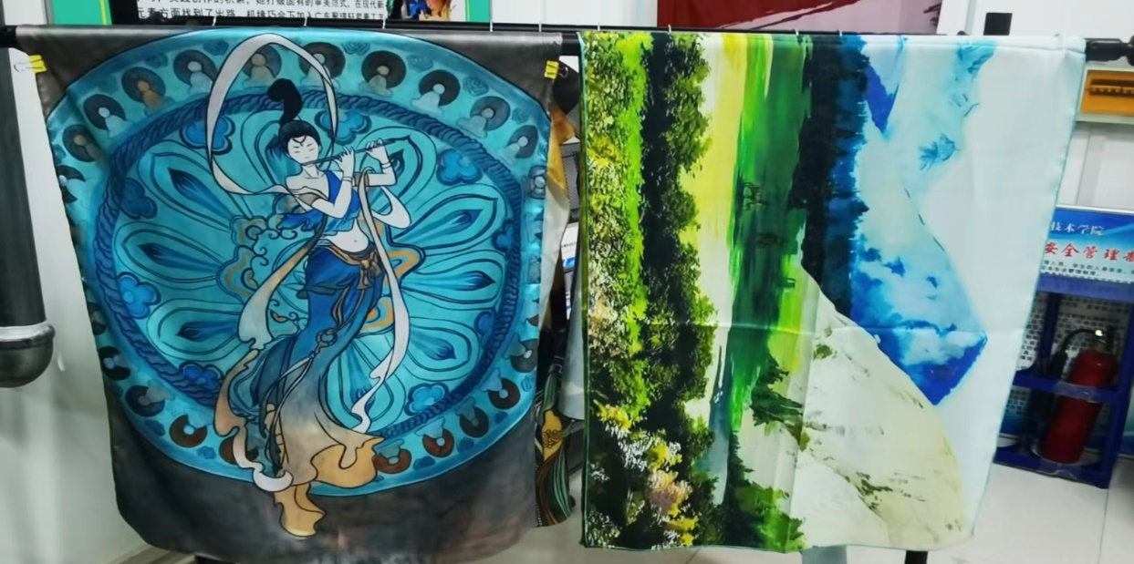 非遗石画印在丝巾上,色彩艳丽,美丽独特