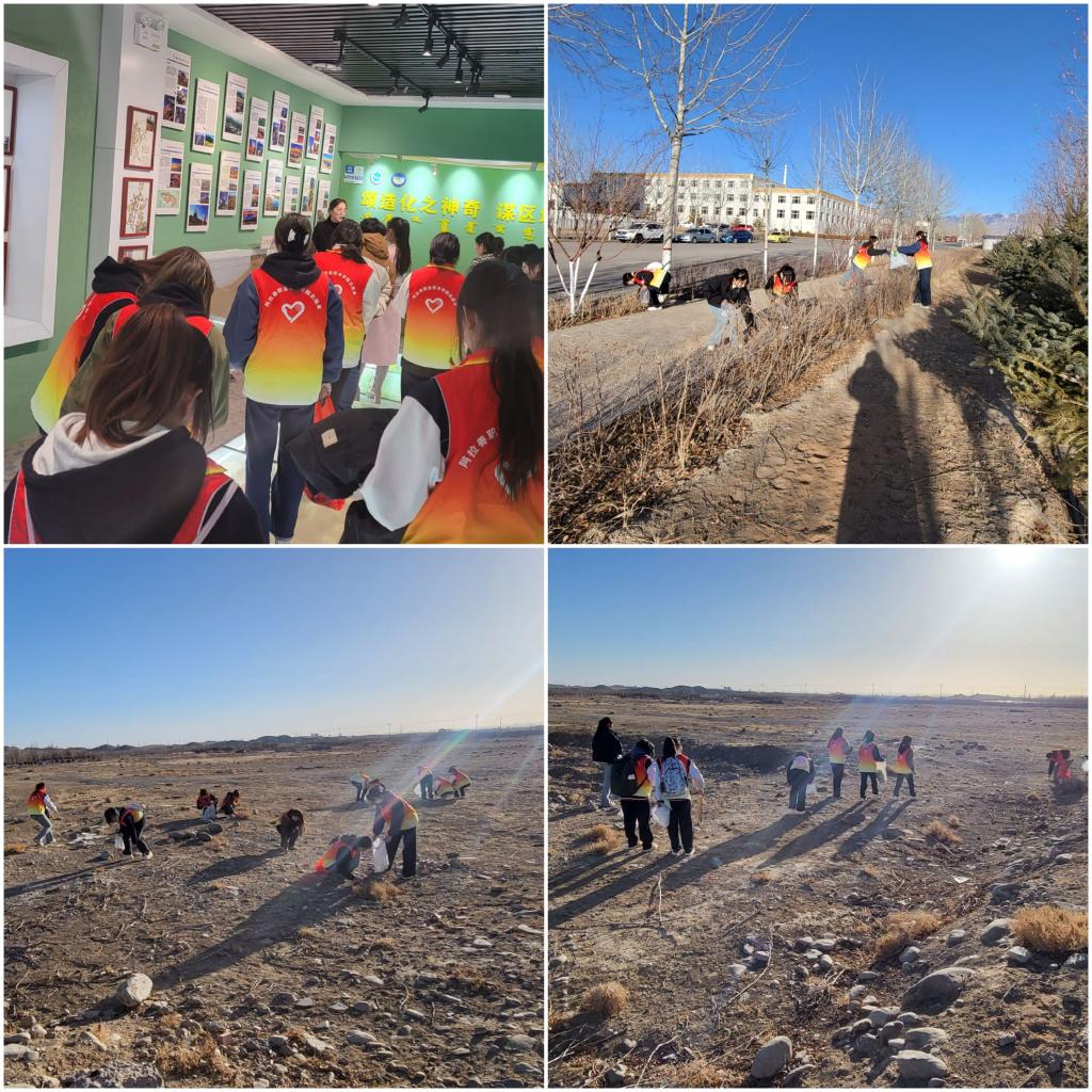 活动服务地点在阿拉善左旗生态沙产业园,艺术系党支部和艺术系团总支组织学生志愿者跟随艺术系教师参观阿拉善生态产业展览馆,将“三北精神”牢牢稳固在内心。随后志愿者们本着“倡导绿色可持续发展”的信念,在野外捡拾垃圾,努力成为建设北疆绿色长城的一份子。