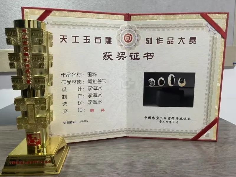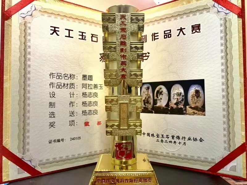 在10月26日落幕的2024天工玉石雕刻作品大赛颁奖仪式上,我系教师杨志良在连续两年获“天工奖”铜奖后,凭借作品《墨趣》斩获银奖。李海冰首次参赛,作品《国粹》荣获铜奖。