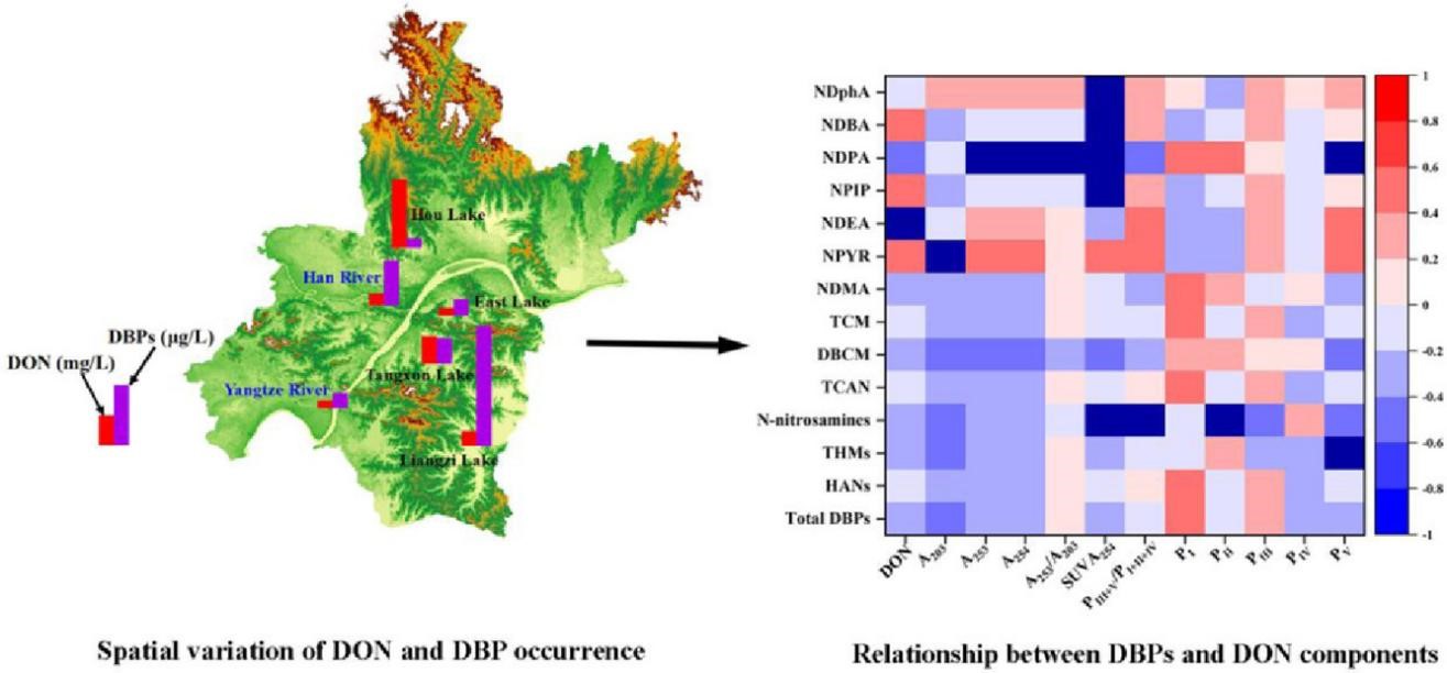 水体中消毒副产物的空间分布及其与DON组分之间的关系