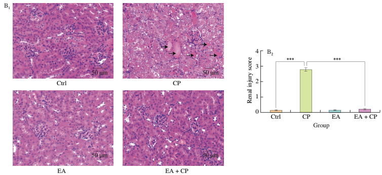 图1.鞣花酸改善顺铂诱导的小鼠急性肾损伤