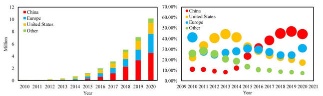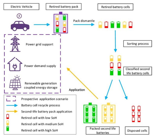 清华新闻网5月8日电 随着国家对新能源电池支持力度的加大、民众环保意识的不断增强以及电池成本的降低,电动汽车(Electric Vehicle,EV)市场正在快速扩张。截至2021年底,全球电动汽车库存已超过1600万辆。尽管电动汽车可以为减少碳排放作出贡献,但如何处理数量巨大的“退役电池”是行业和政府面临的重大挑战。由于这些“退役电池”仍具有约80%的剩余容量,通过开发不同的梯次利用电池(Second-life Battery,SLB)的使用场景并后续进行材料回收,不仅可以提高电池的有效利用率,还可以降低新电池的制造成本,从而大大缓解行业和政府处理废旧电池的压力。同时,随着可再生能源技术的不断发展和应用,光伏加电池储能系统的使用越来越广泛,梯次利用电池恰恰是光储系统中“储”的一个很有潜力的选择。将梯次利用电池应用于并网光储系统时,需要对其可靠性、成本、可持续性进行评估。针对上述梯次利用电池评估、应用和回收领域,beat365中文官方网站深圳国际研究生院张璇、韦国丹、周光敏团队取得了一系列研究成果。
