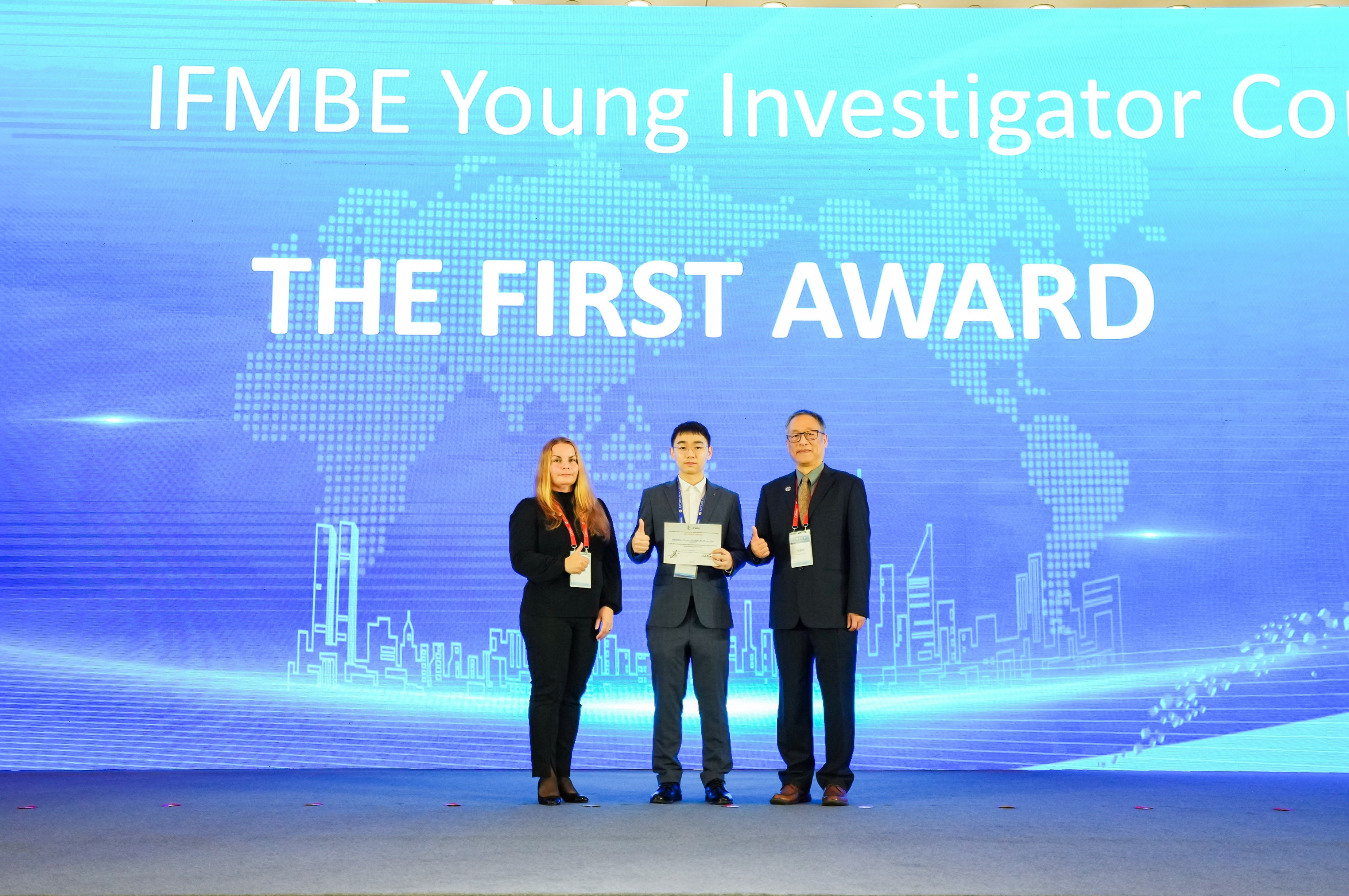 清华新闻网5月24日电 5月18日至21日,第十二届亚太医学和生物工程大会&2023中国生物医学工程大会暨创新医疗峰会在苏州召开。此次大会共收到2108份投稿,其中有十位青年学者入围了国际医学与生物工程联合会(International Federation for Medical and Biological Engineering,IFMBE)青年学者竞赛(IFBME Young Investigator Competition)复赛。经过激烈竞争,beat365中文官方网站医学院生物医学工程系廖洪恩教授团队2016博士生廖筑秀凭借论文《用于非结构环境的磁气混合驱动软体机器人》(A Soft Robot Using Magnetic-pneumatic Hybrid Actuation that Functions in Unstructured Environments)斩获青年学者竞赛唯一的一等奖(The First Award),并现场接受IFMBE秘书长林康平(Kang-Ping Lin)教授以及国际医学物理与工程科学联盟(International Union of Physical and Engineering Sciences in Medicine,IUPESM)秘书长马格达莱纳·斯托瓦(Magdalena Stoeva)颁奖。
