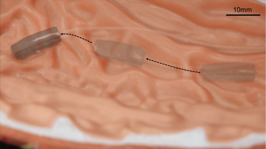 磁气混合驱动软体机器人在胃仿体模型中的运动实验图