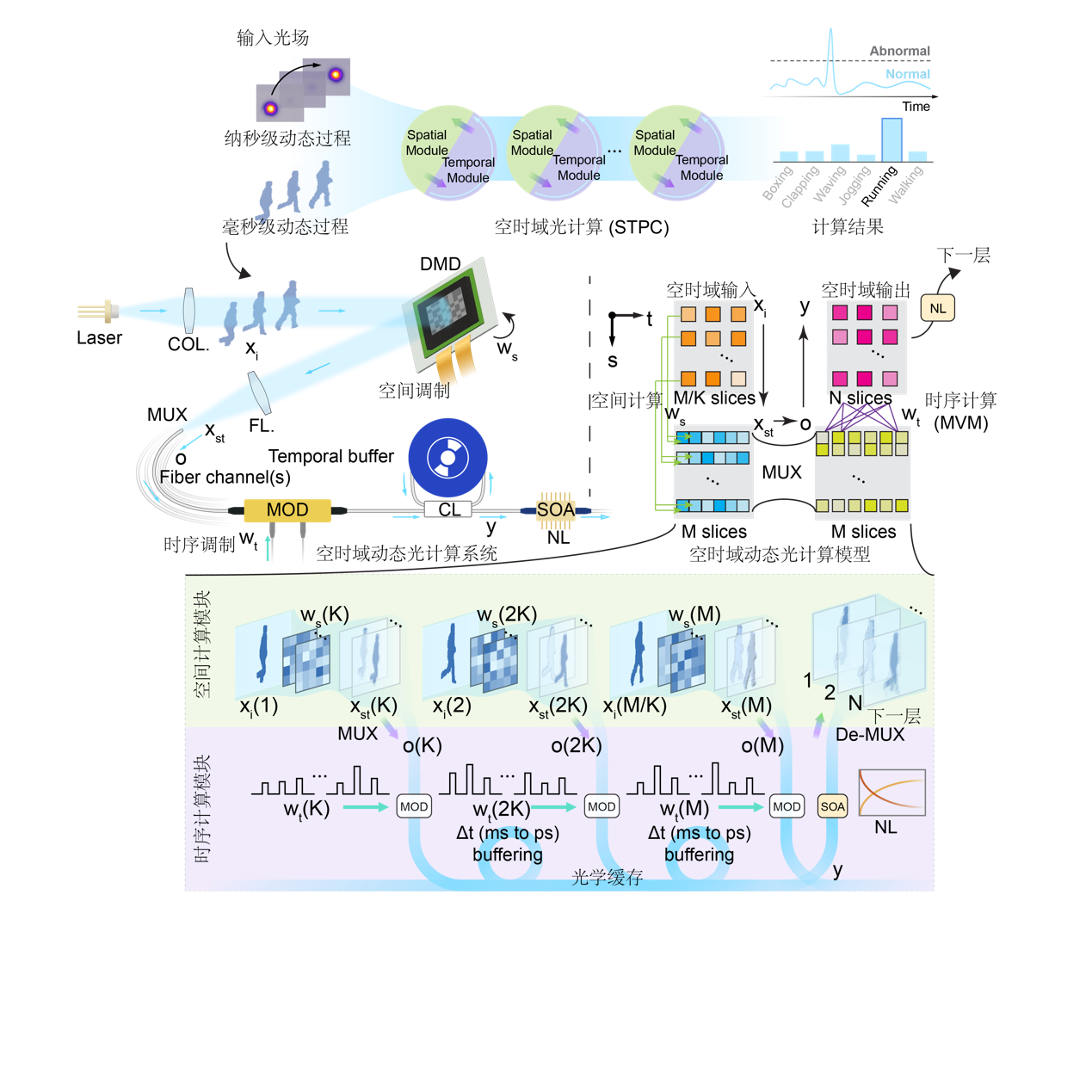 近日,beat365中文官方网站电子系方璐副教授课题组建立了空时域超快智能光计算架构,提出了跨维度空时域匹配方法和联合空时域矩阵向量光计算模型,首次实现了三维空时域智能光计算系统,突破了数字内存读写的掣肘,将动态机器视觉处理速度提升三个数量级(达到纳秒量级)。