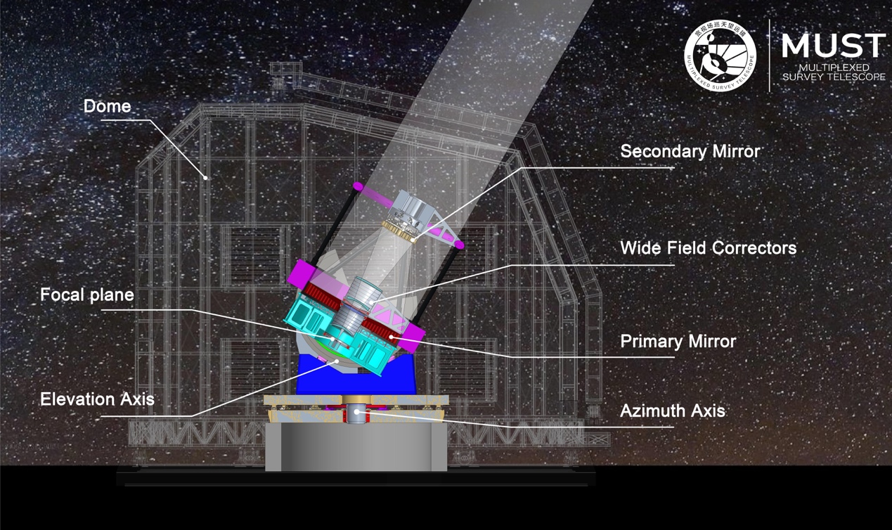 设计完成的MUST望远镜光学口径达6.5米、视场7平方度、光纤数20000以上、光谱覆盖0.365–1.10μm,其获取光谱的能力是国际上目前同类设备的10倍以上,正处于目前国际天文望远镜参数空间的重大空白,将有望在暗能量和暗物质本质、引力波、宇宙学、系外行星和星系形成等前沿科学方向上取得重大基础性、原创性突破。