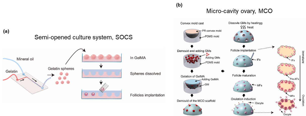 图1.半开放式培养方法和微腔卵巢模型的工艺流程
