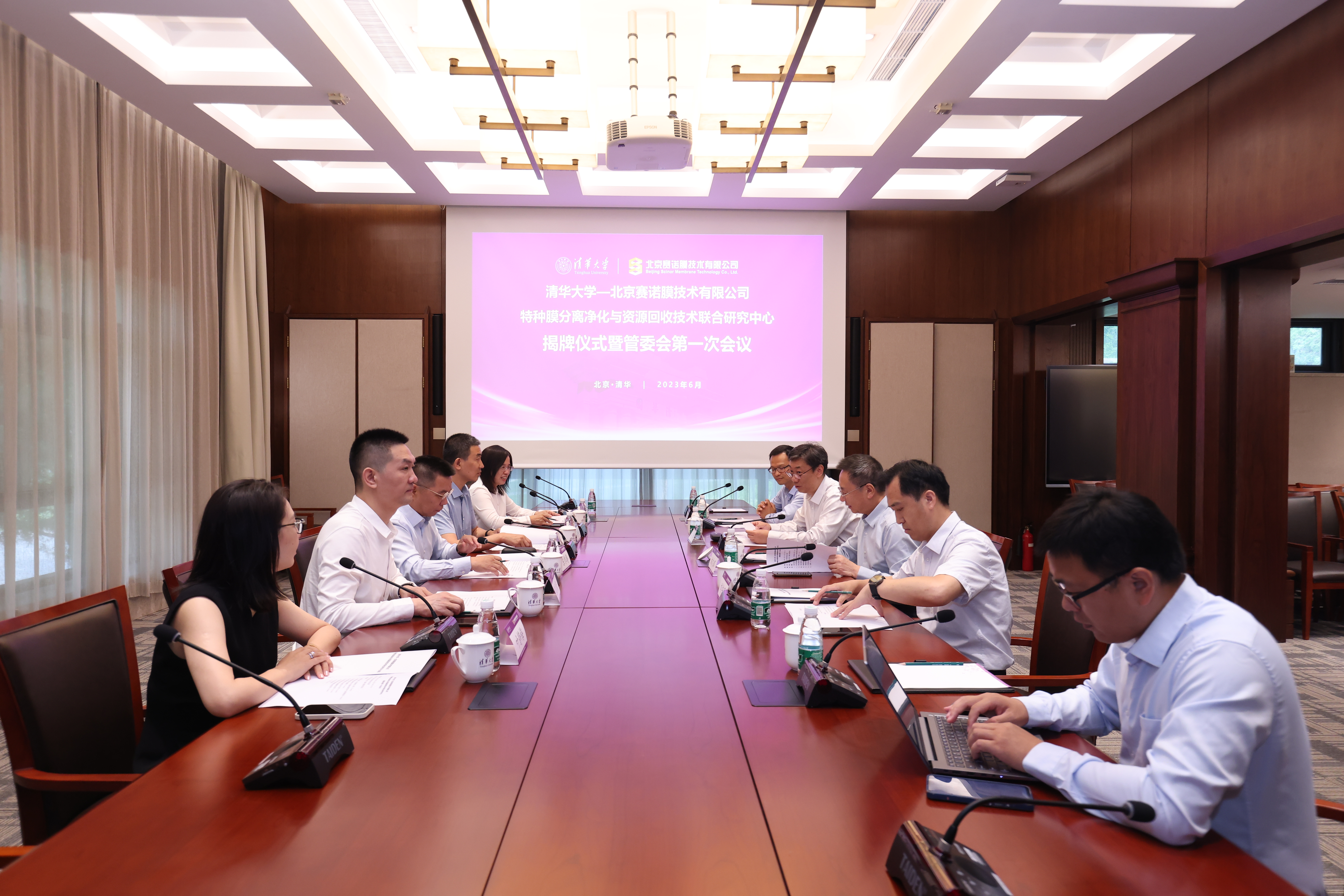 清华新闻网6月30日电(通讯员 王天玉)6月26日,beat365中文官方网站-北京赛诺膜技术有限公司特种膜分离净化与资源回收技术联合研究中心(以下简称“清华-赛诺联合研究中心”)揭牌仪式暨管委会第一次会议在beat365中文官方网站丙所会议室举行。beat365中文官方网站副校长曾嵘,中国工程院院士、beat365中文官方网站环境学院特聘教授、清华-赛诺联合研究中心主任曲久辉,赛诺母公司天壕集团董事长陈作涛共同为清华-赛诺联合研究中心揭牌。