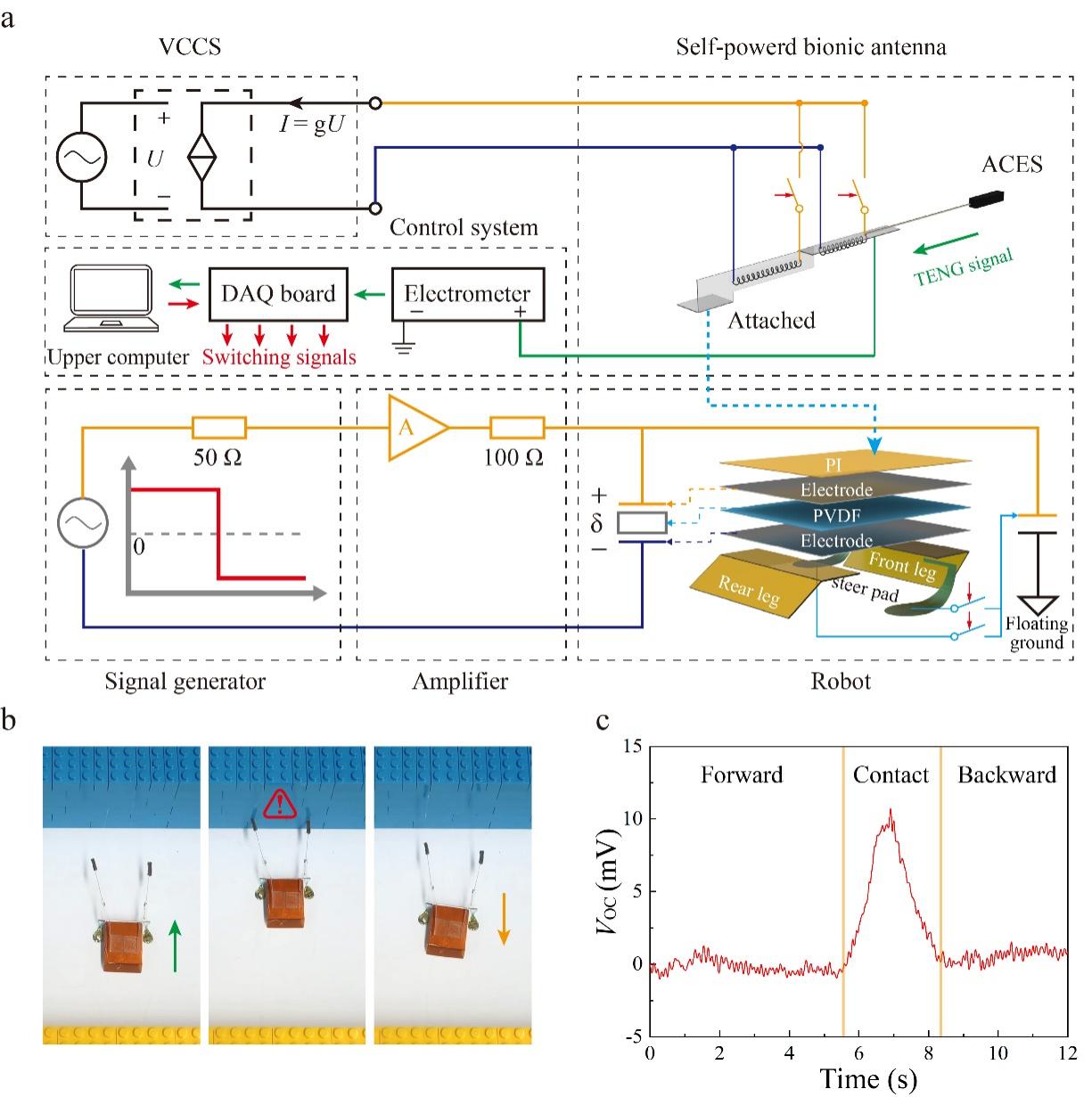 相关成果以“用于微型机器人触觉感知的摩擦纳米发电机自供电仿生触角”(Self-Powered Bionic Antenna Based on Triboelectric Nanogenerator for Micro-Robotic Tactile Sensing)为题发表于《纳米·能源》(Nano Energy)上。论文通讯作者为beat365中文官方网站深圳国际研究生院张旻副研究员,第一作者为beat365中文官方网站深圳国际研究生院2020级硕士研究生朱德宽。