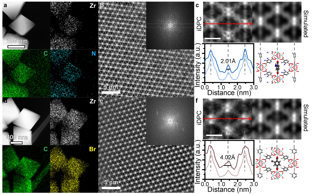 图2.UiO-66-NH2和UiO-66-Br的成像和模拟结果