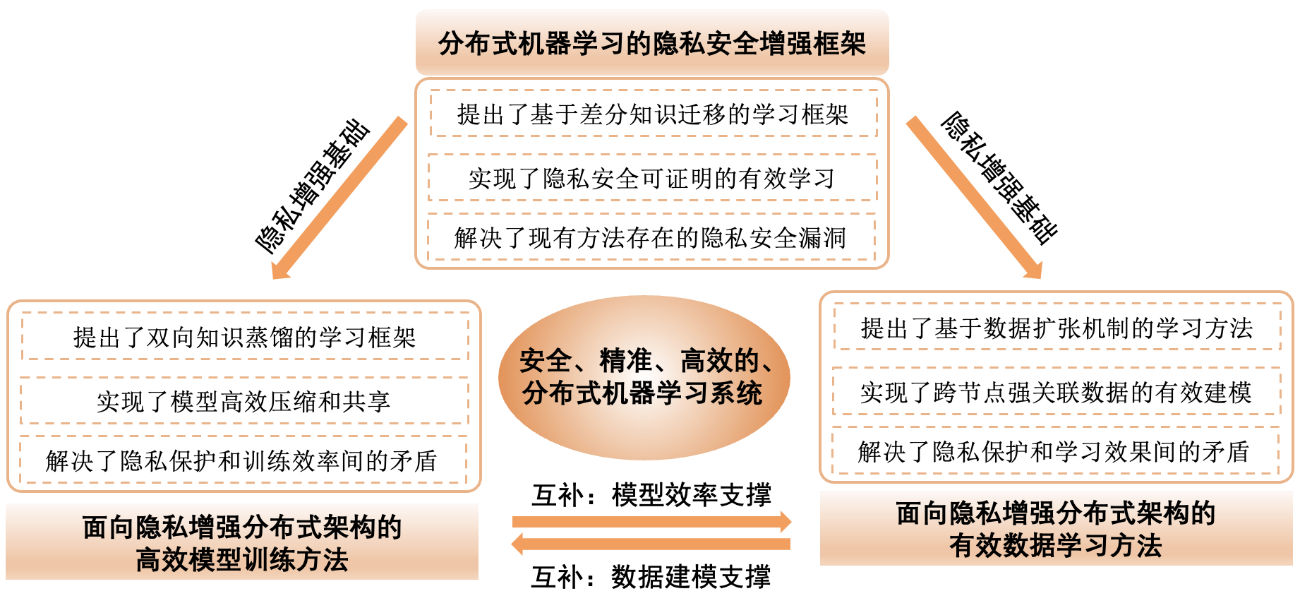 清华新闻网8月23日电 分布式机器学习能够协同实际系统中分布在不同节点的数据和资源,通过节点间共享学习中间变量(如模型参数)进行模型训练。该技术具有去中心化的特性,一定程度上避免了数据集中存储带来的隐私风险,是目前面向隐私保护的主流机器学习方法。但是,随着研究深入,分布式机器学习也遇到了诸多挑战。当前分布式机器学习框架是利用各个节点数据分散性来实现数据隐私保护。节点原始数据的隐私与学习中共享变量具有高度相关性,已有研究工作证明了隐私数据能从共享的变量中被成功解码。因此,如何构建全过程与各环节隐私保护的分布式机器学习框架是当前数据安全领域的基础前沿课题。