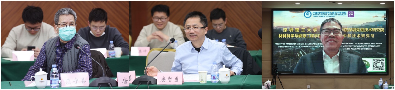 范守善、唐智勇、成会明(从左至右)就项目论证发言
