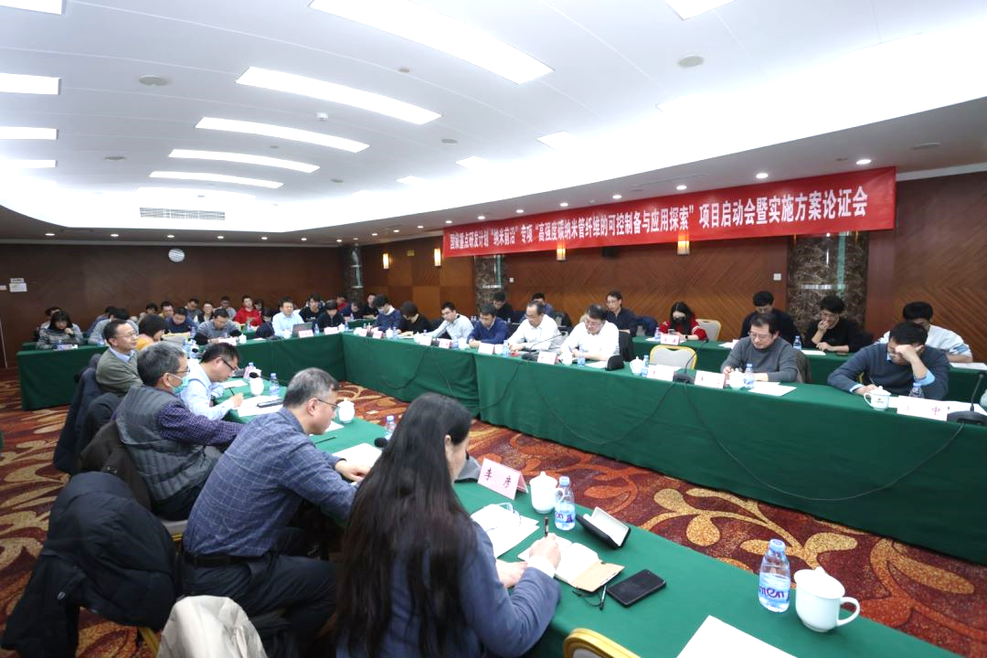 实施方案论证会由范守善和唐智勇主持。魏飞汇报了项目的关键科学问题与解决思路、总体研究思路与研究内容、技术路线与研究方法、考核指标与进度安排、创新性与可行性、研究队伍与研究基础、年度研究进展、经费与组织管理、风险分析与预期效益。各课题负责人详细汇报了课题实施方案。