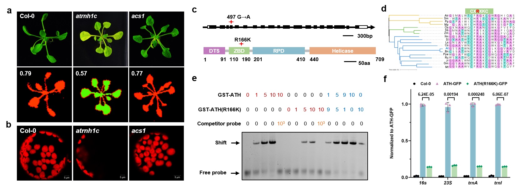图1.叶绿体引物酶ATH点突变通过减弱其与DNA结合抑制atrnh1c突变体表型