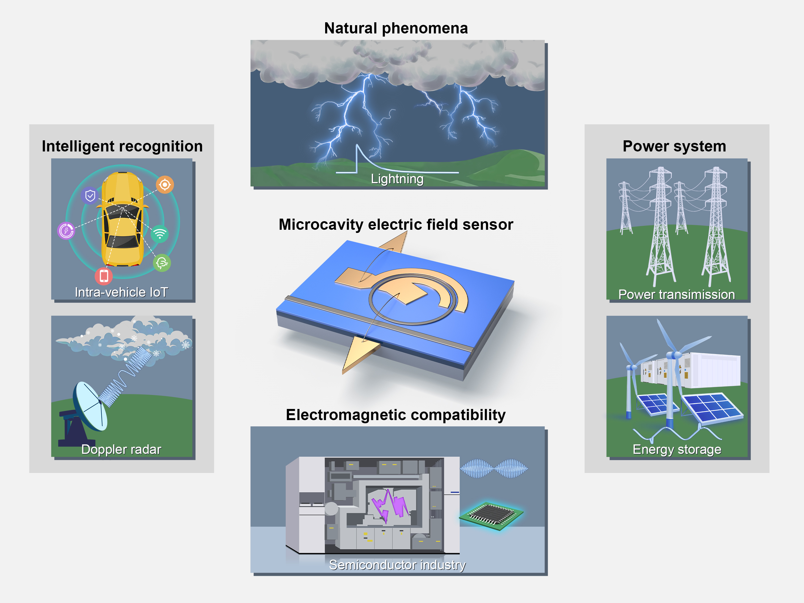 图1.微腔电场传感器及其潜在应用