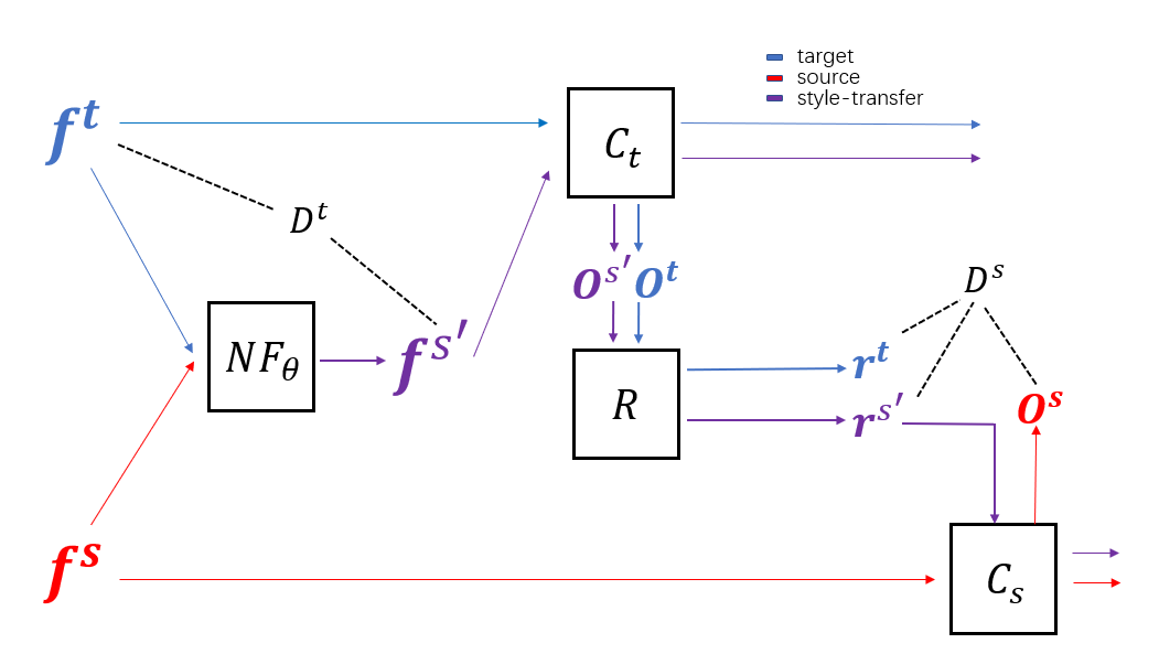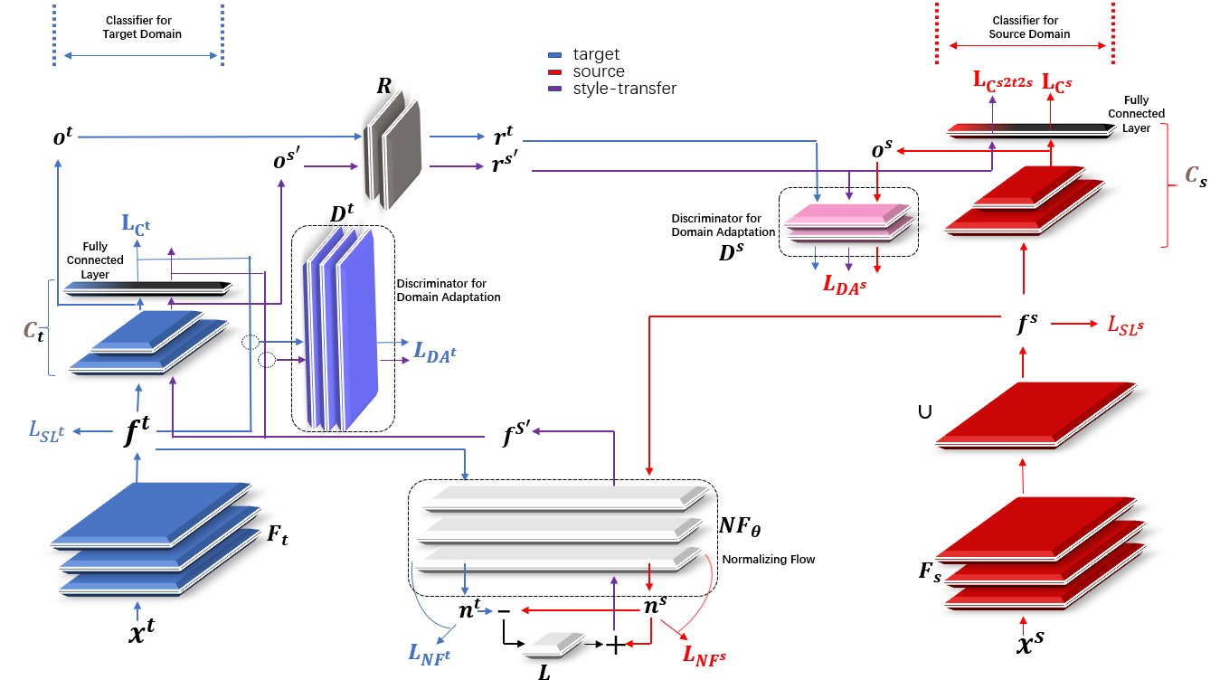 近日,beat365中文官方网站深圳国际研究生院李星辉副教授团队受视觉任务中以CycleGAN为代表的风格迁移以及领域自适应中的条件对抗方法启发,构建了从弱相关时间序列分类数据集进行迁移学习的架构。该架构在考虑源域和目标域间的差异以及因此而可能产生的负迁移的基础上,将源域和目标域分类器分别搭建,通过在不同深度的表征层上进行对齐操作并借助归一化流生成同时带有目标域与源域特征的表征,实现了源域到目标域的迁移。由于在新表征的生成上以及计算的全流程上与风格迁移有相似之处,因而命名方法为特征层风格迁移。