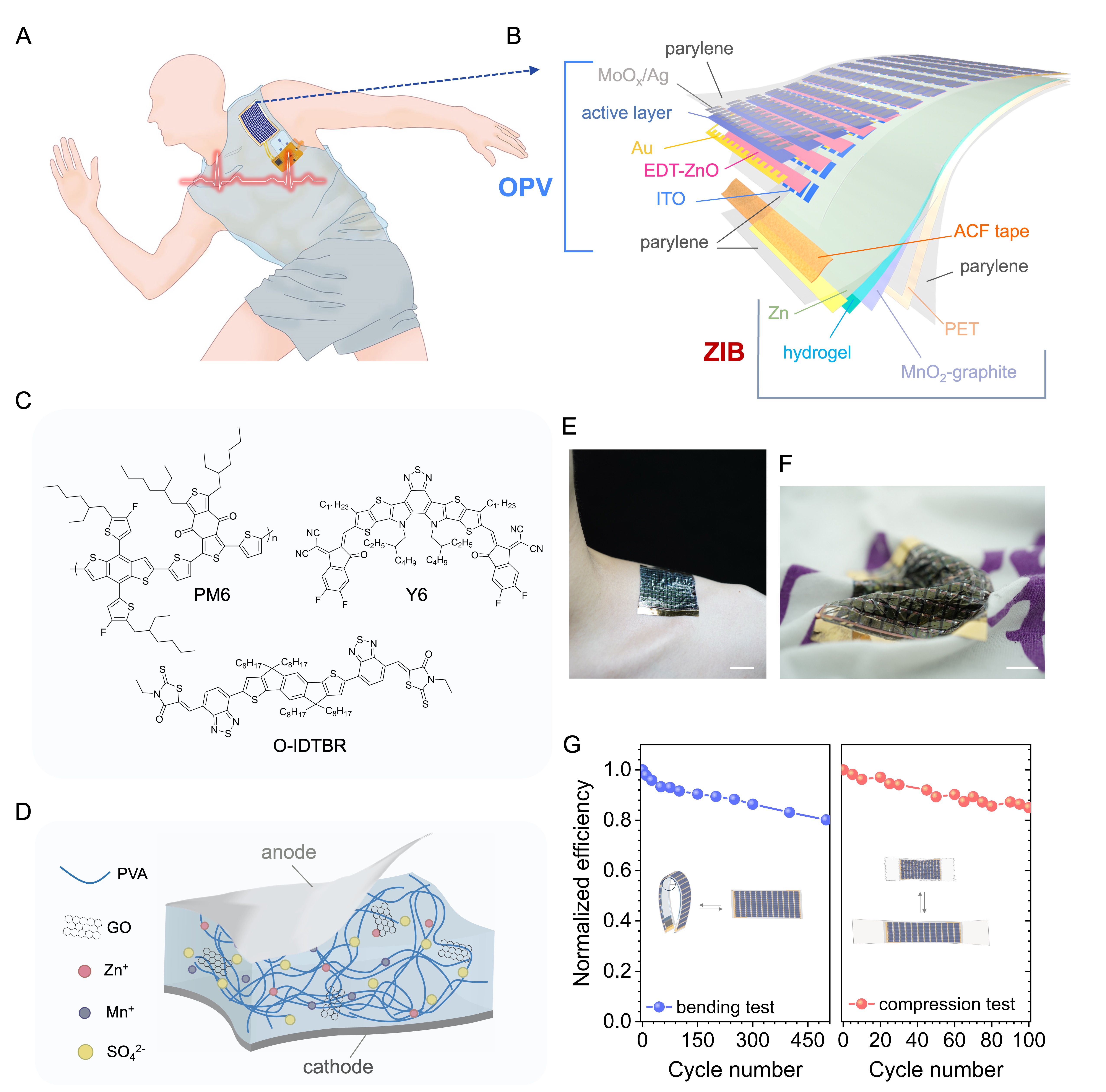 近日,beat365中文官方网站深圳国际研究生院徐晓敏团队与周光敏团队等合作,报道了厚度仅90微米的超柔性能量收集-储存一体化系统,该系统由超柔性高性能OPV组件与超薄锌离子电池(ZIB)集成,其为可穿戴生物传感系统及日常电子设备供电展示了FEHSS作为新一代可穿戴绿色能源设备的可行性(图1)。
