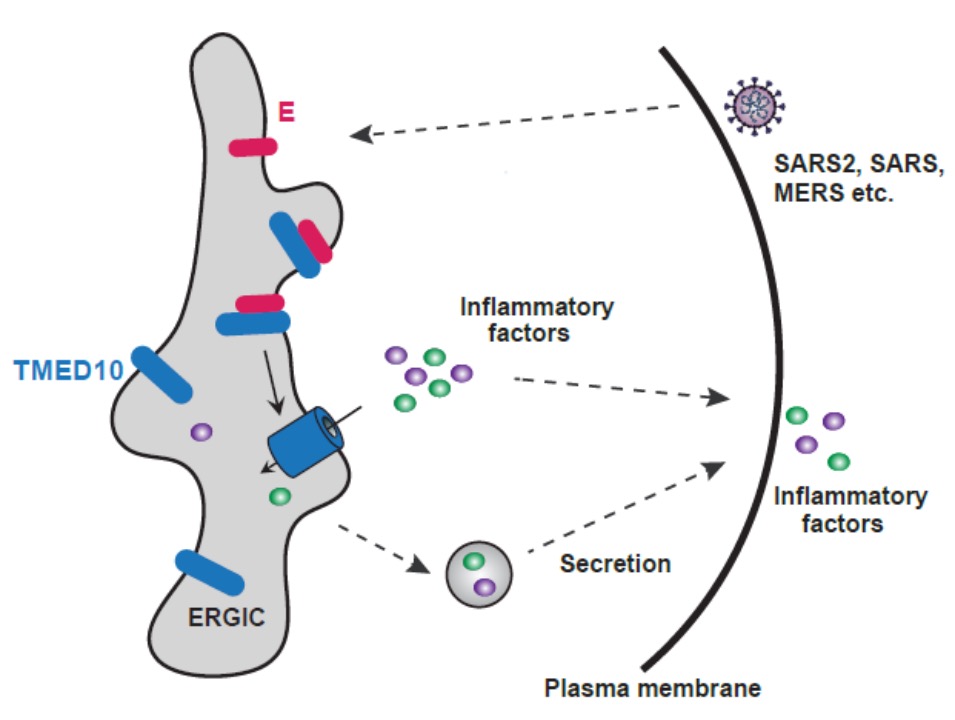 相关研究成果以“冠状病毒包膜蛋白通过激活TMED10非经典分泌通路调控炎症因子的释放”(Coronavirus envelope protein activates TMED10-mediated unconventional secretion of inflammatory factors)为题,于10月8日发表于《自然·通讯》(Nature Communications)。