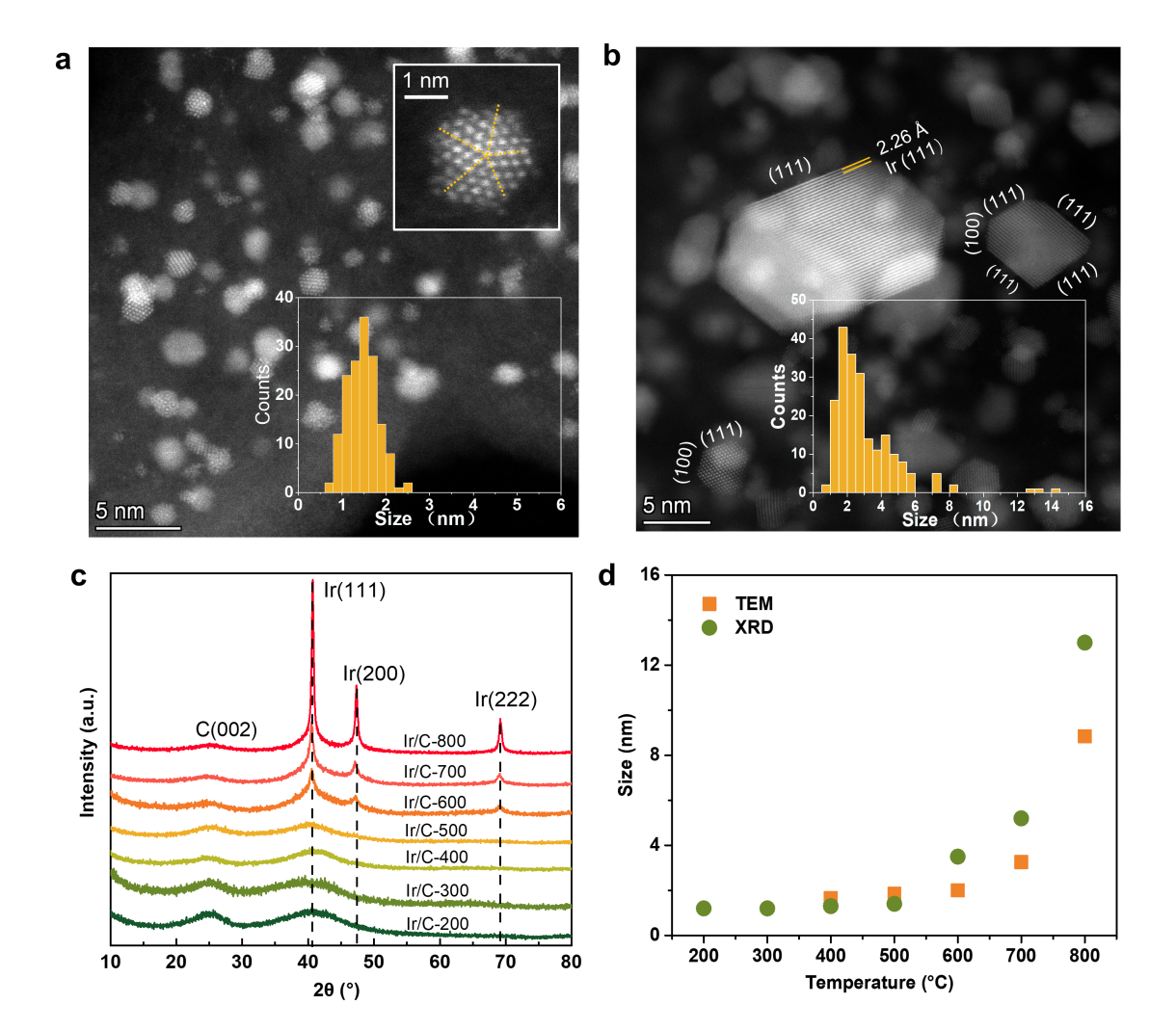 图1.不同尺寸的Ir纳米颗粒催化剂的制备与结构表征
