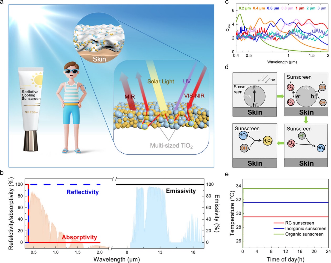 图3.辐射制冷防晒霜的概念设计、模型构建以及理论模拟