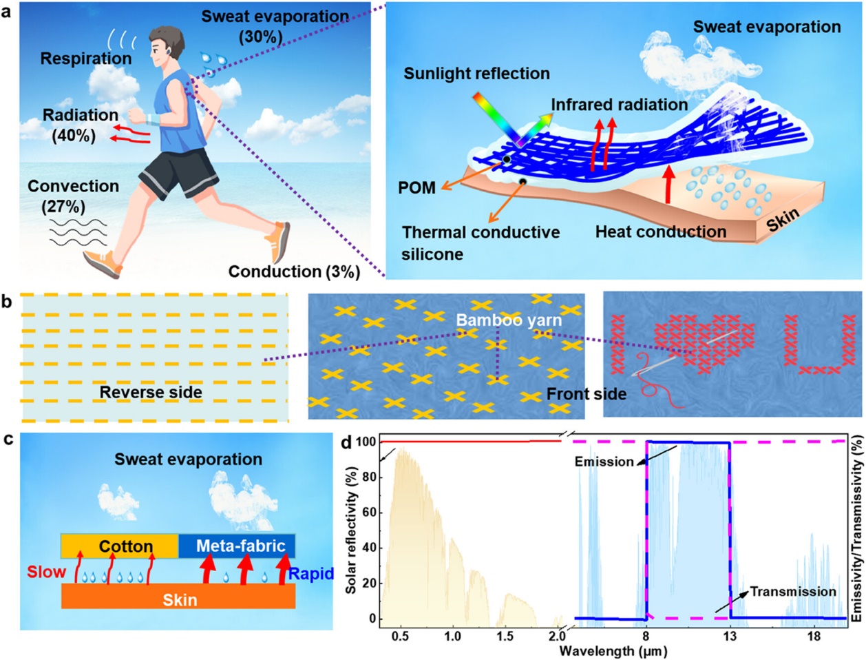 图4.导湿导热的辐射制冷超织物设计示意图