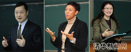 郦金梁教授(左)、Michellana Y. Jester(中)、张磊在报告会上发言。