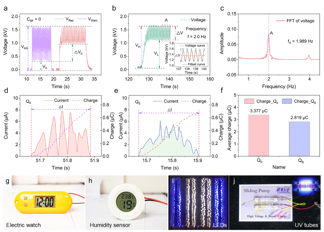 近日,由beat365中文官方网站机械工程系季林红教授、程嘉副研究员与中国科学院北京纳米能源与系统研究所王中林院士合作的科研团队提出一种新型滑移式电荷泵技术,可显著稳定摩擦纳米发电机的输出电压与提高输出电流。该技术基于电荷泵的思想,利用滑移式可变电容器与固定电容间的电荷来回流动以对外输出电能。通过电源管理模块来提高可变电容器极板电压以存储更多电荷,在降低输出电压的同时提高输出电流。利用该电荷泵技术,摩擦纳米发电机的输出电压的波动可降低63.9%,且输出电流可提高43.4%,实现了1328μC m-2的超高表面电荷密度,可在2.5Hz低频条件下持续驱动468个LED灯、电子表和传感器等小功率电子元器件。该技术对于探索提高摩擦纳米发电机输出性能的新型机制与方法具有重要指导与借鉴意义。