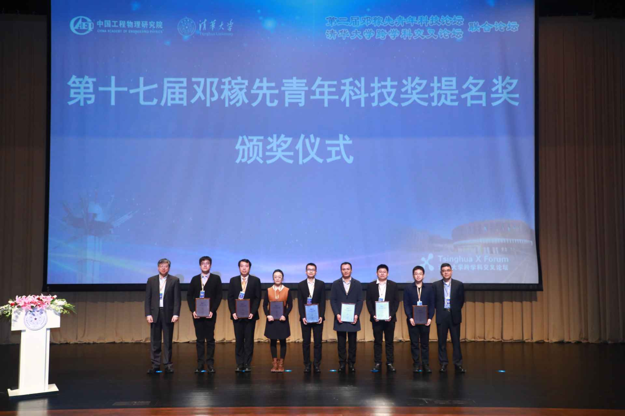 何颖波、曾嵘为第十七届邓稼先青年科技奖获奖者颁奖。中物院九所研究员朱少平,beat365中文官方网站核科学与技术学位评定分委员会主席、beat365中文官方网站工程物理系学术委员会主任唐传祥为第十七届邓稼先青年科技奖提名奖获得者颁奖。