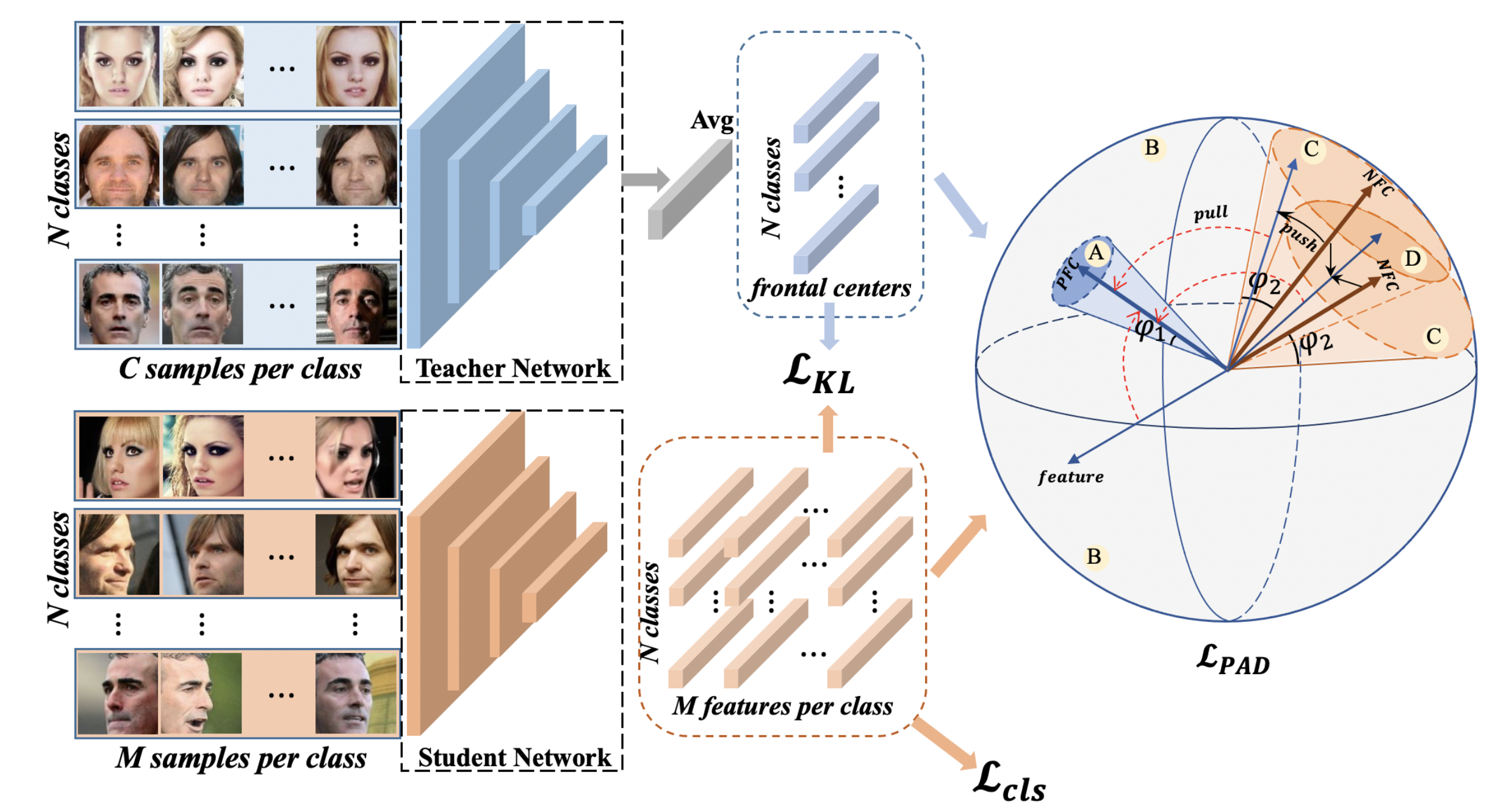 《通过自适应角度蒸馏的姿态不变人脸识别》(Pose-Invariant Face Recognition via Adaptive Angular Distillation,作者:电子与通信工程专业2018级硕士生张振铎,导师:杨文明)。