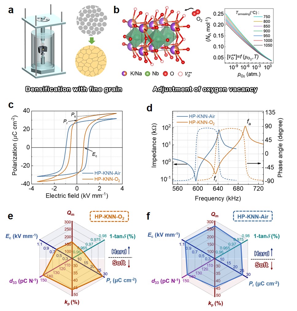 图2.探索提高无铅压电陶瓷大功率输出新途径:KNN陶瓷的氧空位缺陷设计与电学性能协同调控