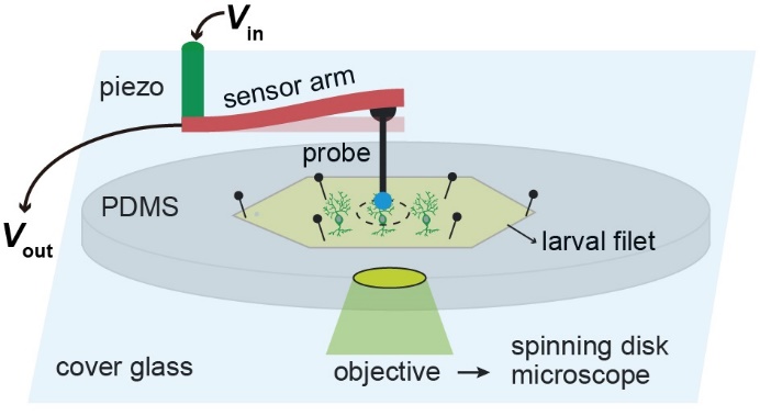 10月6日,beat365中文官方网站生命学院、清华-IDG/麦戈文脑科学研究院梁鑫副教授课题组在《e生命》(eLife)期刊上在线发表了题为“果蝇机械痛觉感受器优先感知局部刺痛”(Drosophila Mechanical Nociceptors Preferentially Sense Localized Poking)的研究论文。该论文利用自行搭建的“机械力-光学”联用装置(图1),对果蝇c4da痛觉神经元进行了原位机械力刺激,并同步记录和分析了神经元对不同类型力信号的响应(图2)。