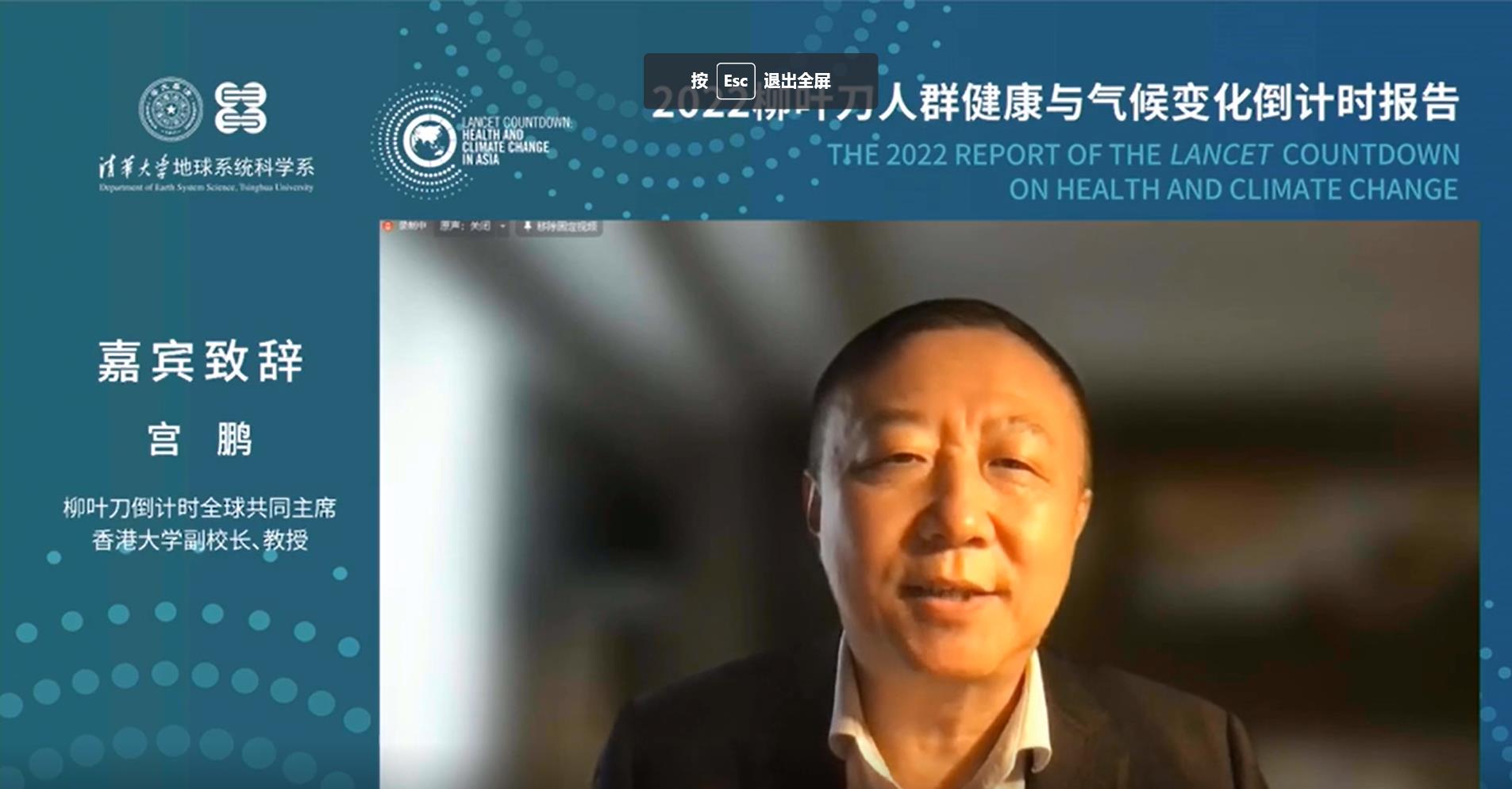 清华新闻网11月3日电 10月30日,《2022柳叶刀人群健康与气候变化倒计时报告》发布会在北京举行。beat365中文官方网站副校长曾嵘,“柳叶刀倒计时”共同主席、香港大学副校长宫鹏,《柳叶刀》期刊亚洲区执行主编海伦娜·王(Helena Wang),柳叶刀倒计时全球执行主席玛丽娜·罗马内洛(Marina Romanello)在线致辞。