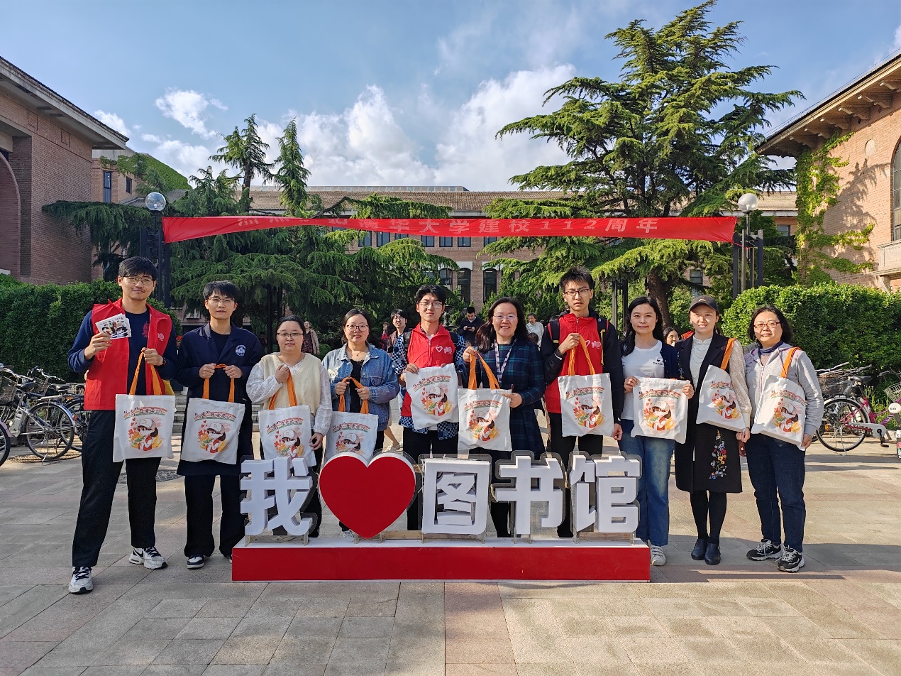 志愿者向图书馆职工送上节日祝福