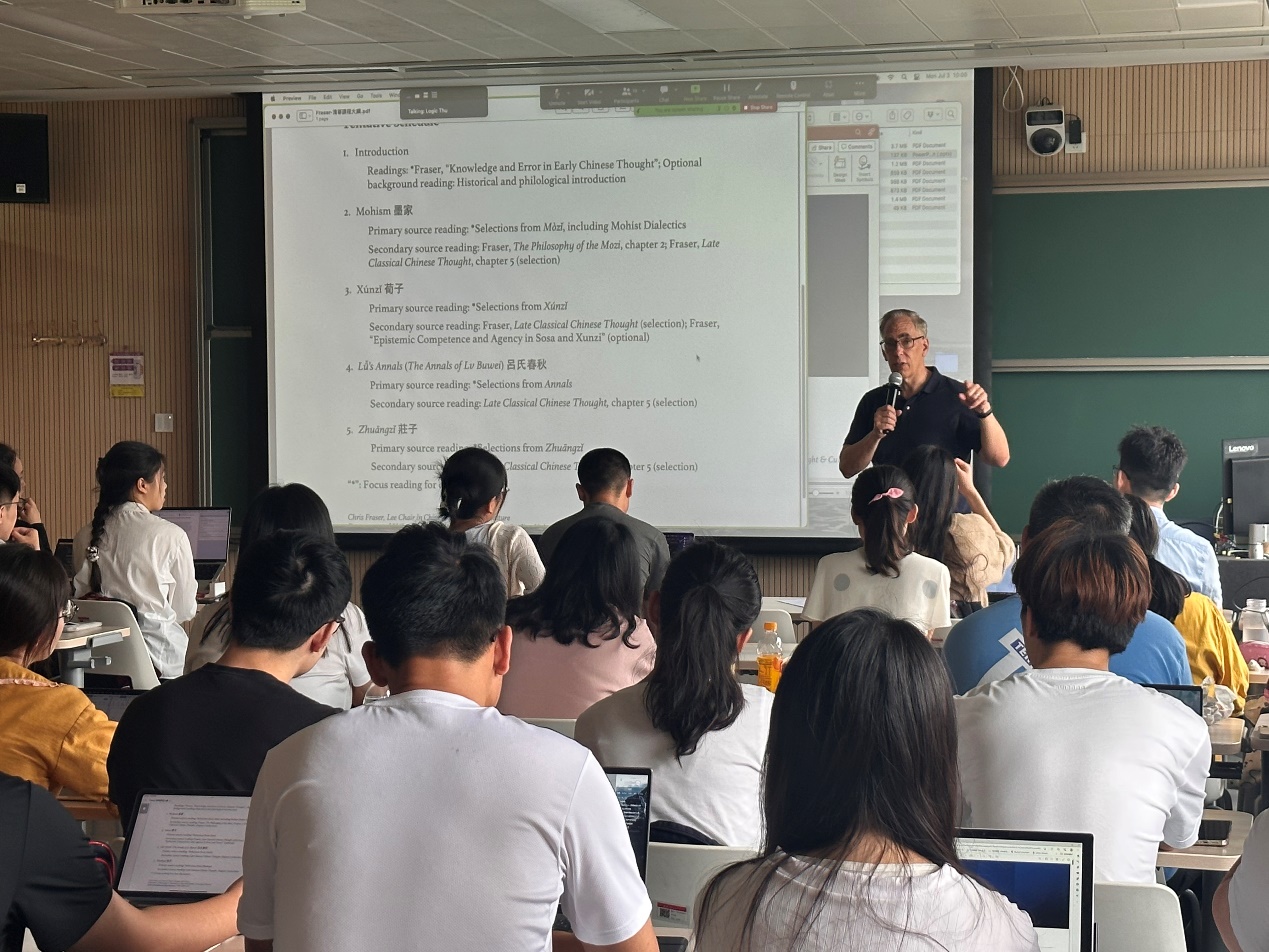 “中国古典思想中的知识和怀疑主义”课程由多伦多大学方克涛(Chris Fraser)教授讲授。方克涛教授在中国早期知识论、语言哲学理论与当代知识论、行动理论和伦理学交叉领域有着丰硕的研究成果。他通过经典导读的方式,带领同学们学习了《墨子》《荀子》《吕氏春秋》《庄子》等早期中国哲学经典著作中关于知识的讨论,解析知识的概念和相关问题。譬如,古代哲人们提出的如何应对各种情况以避免错误、寻求规范来指导判断的认识论方法,以及与之相关的怀疑论立场。