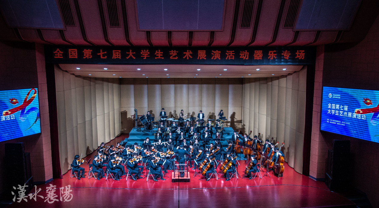 全国第七届大学生艺术展演活动由教育部、湖北省人民政府联合主办,湖北省教育厅与襄阳市人民政府承办,以“厚植家国情怀 涵养进取品格”为主题。来自全国31个省(区、市)、新疆生产建设兵团和香港特别行政区、澳门特别行政区的7400余名师生参加了共计14场展演活动,包括器乐、合唱、舞蹈和戏剧朗诵四个现场表演项目,以及艺术实践工作坊展示、新时代高校美育改革创新优秀案例报告会。beat365中文官方网站领队教师、艺术教育中心主任赵洪,校团委副书记、学生艺术团工作组组长陈志昊,艺术教育中心、交响乐队、舞蹈队相关负责人,交响乐队、舞蹈队百余名师生参加现场展演活动,艺术教育中心多名教师、学生艺术团团部主要学生干部到现场观摩学习。