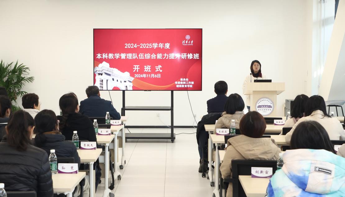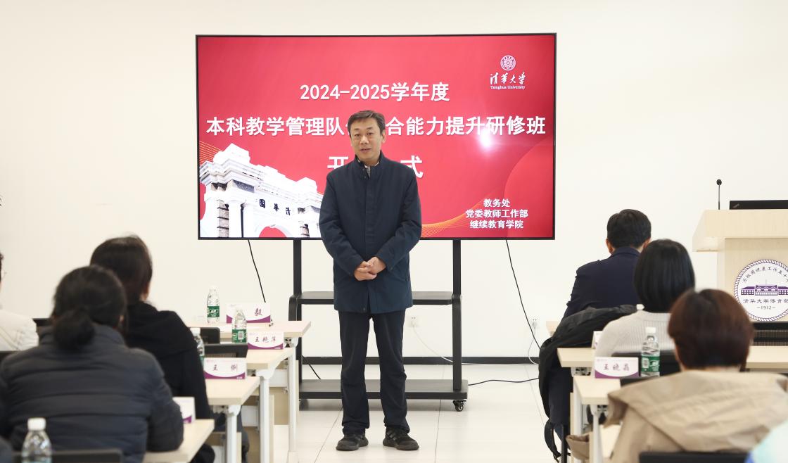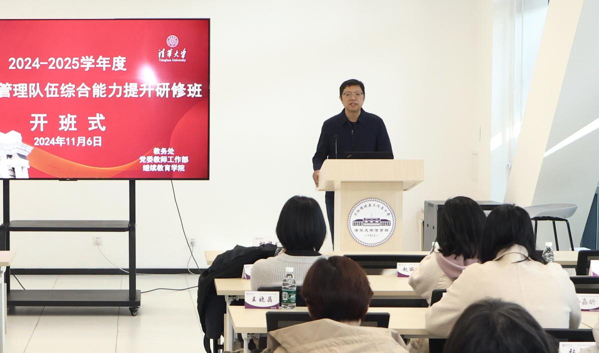 清华新闻网11月8日电 11月6日下午,由教务处、党委教师工作部主办,继续教育学院承办的2024-2025学年度本科教学管理队伍综合能力提升研修班开班式暨团队融合预热活动在北体育馆举行。教务处处长刘毅、党委教师工作部副部长胡坚明参加并致辞,教务处副处长程曦主持。来自28个院系以及教务处的45位本科教学管理人员参加本期培训。